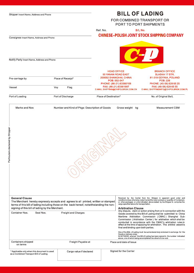 Electronic Bill of Lading (Template)