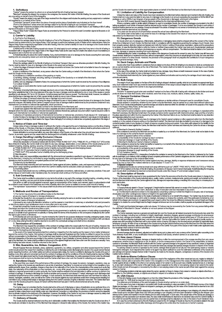 “Hague Rules” means the provisions of the International Convention for the Unification of Certain Rules of Law Relating to Bill of Lading signed at Brussels on 25th August, 1924. “Hague-Visby Rules” means the Hague Rules as amended by the Protocol to amend the said Convention signed at Brussels on 23rd February, 1968.