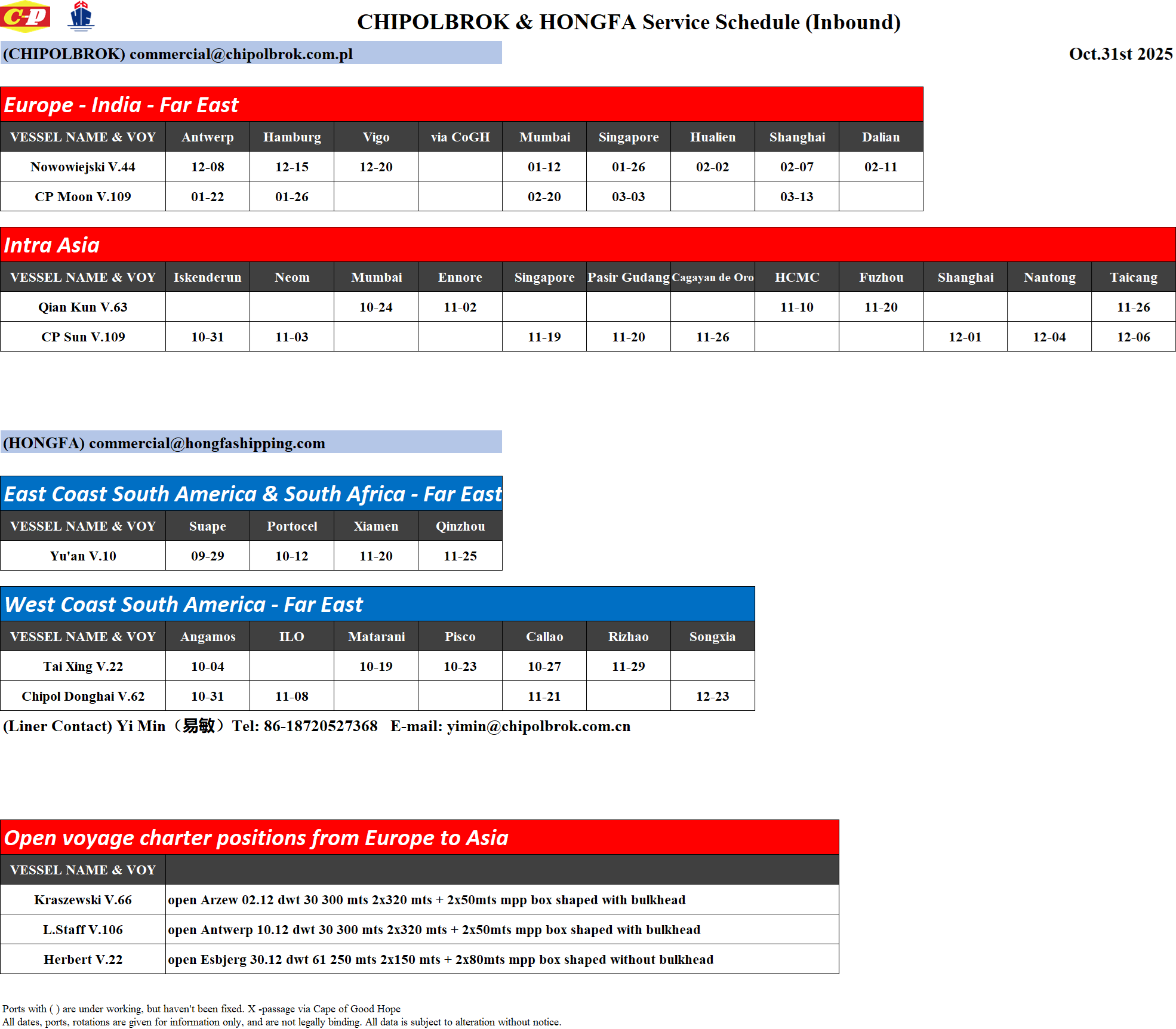 CHIPOLBROK & HONGFA SHIPPING Standard Terms and Conditions